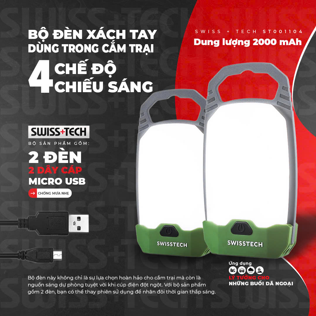 Bạn đang tìm kiếm một bộ đèn xách tay gọn, nhẹ và đa năng để làm sáng bóng không gian trong chuyến cắm trại của bạn? Bộ Đèn Xách Tay SWISS+TECH ST001104, một giải pháp tuyệt vời cho mọi hoạt động ngoài trời.