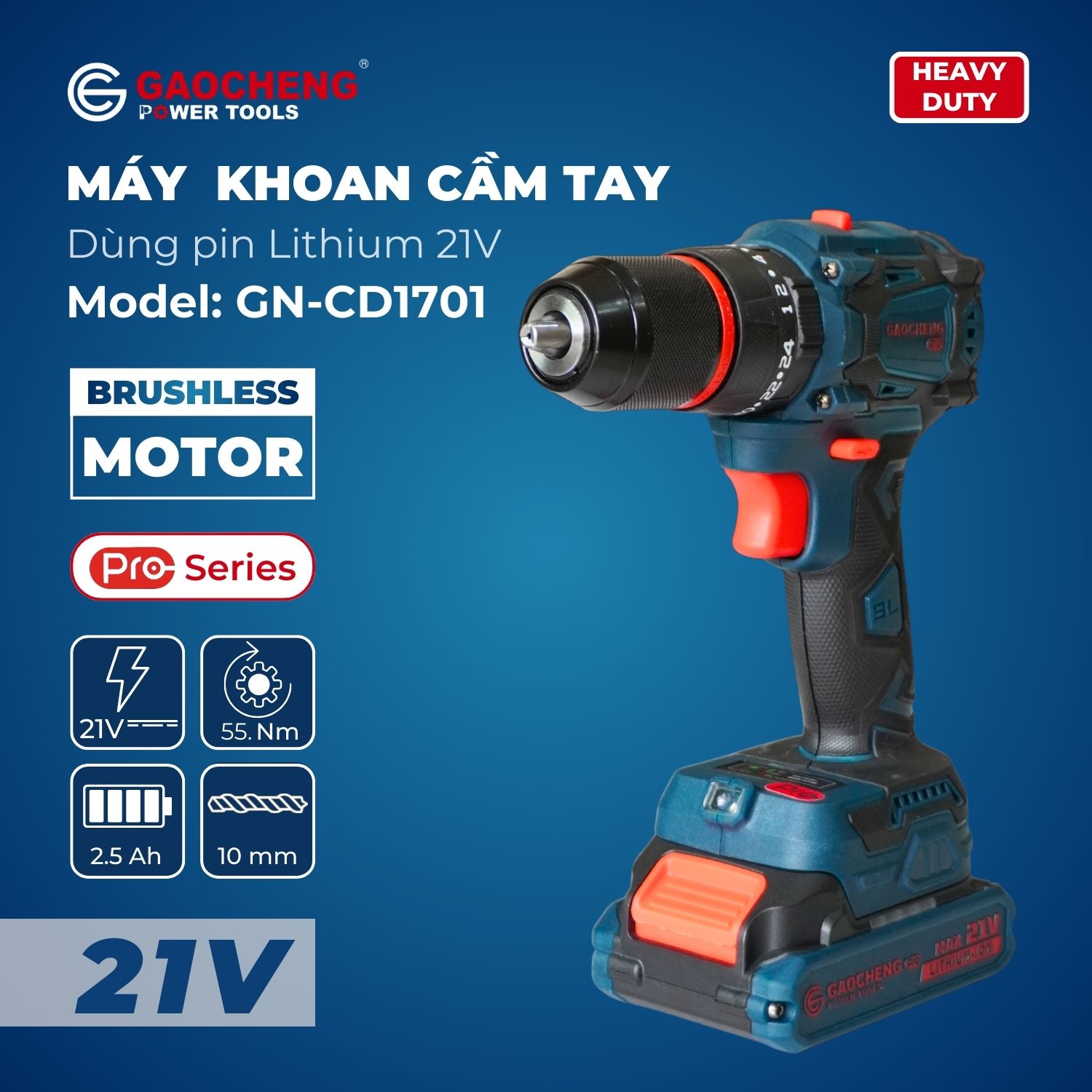 Máy khoan lithium chuyên nghiệp này phù hợp với nhiều ứng dụng trong xây dựng, chế biến gỗ và sửa chữa nhà cửa. Nó có thể được sử dụng để khoan lỗ trên gỗ, kim loại và nhựa, cũng như vặn vít và bu lông. Cho dù bạn là nhà thầu chuyên nghiệp hay người đam mê tự làm, máy khoan lithium GAOCHENG GN – CD1701 đều có thể đáp ứng nhu cầu của bạn cho các công việc khác nhau nhờ hiệu suất đa năng của nó.
