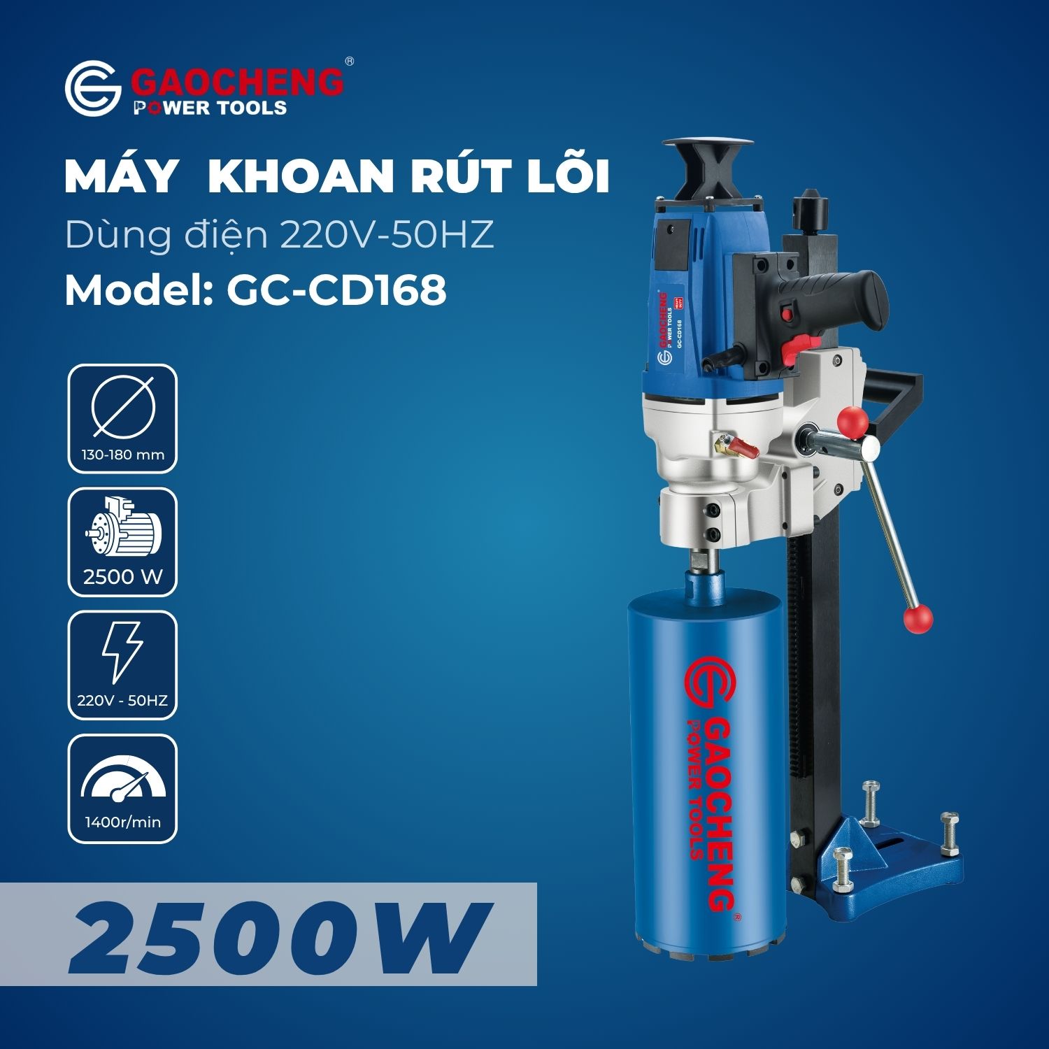 Máy khoan rút lõi đứng Gaocheng GC-CD168 là giải pháp hoàn thiện hiệu suất cao, chuyên đáp ứng các yêu cầu khoan khoét lõi bê tông cốt thép khắt khe trong ngành xây dựng. Sở hữu động cơ công suất lớn 2500W, máy mang lại hiệu quả vượt trội cho các công việc thi công đường ống nước, chạy đường điện, lắp đặt điện lạnh hay phá dỡ công trình.