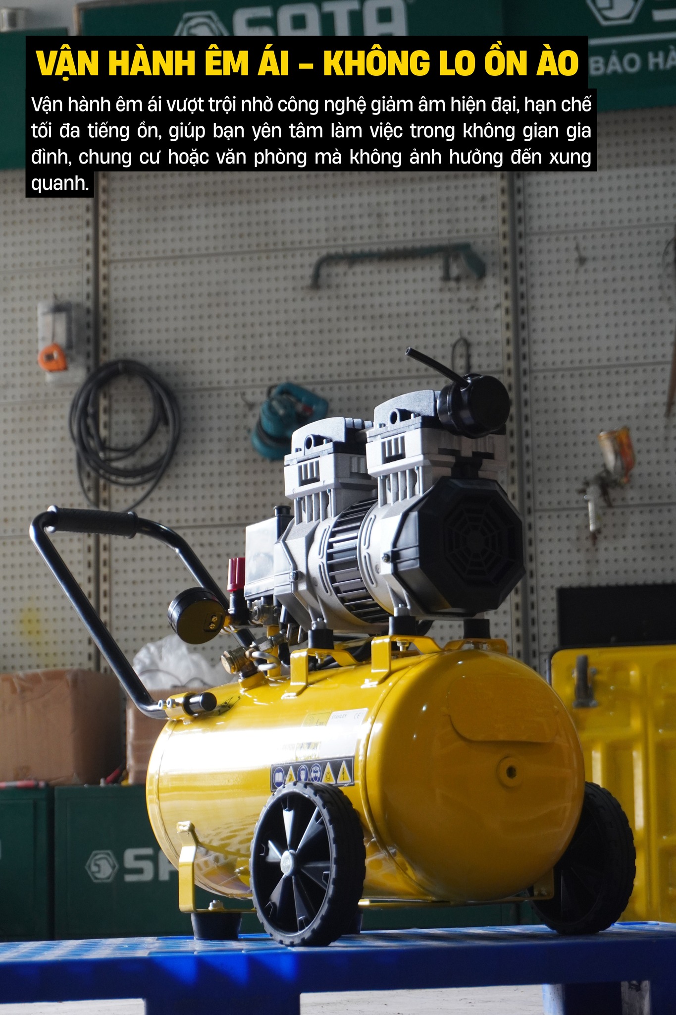 Bên cạnh đó Máy nén khí không dầu 24L Stanley SXCMS1324HE còn được trang bị công nghệ Silent Type của Stanley giúp giảm độ ồn khi hoạt động của máy xuống mức 59dB.