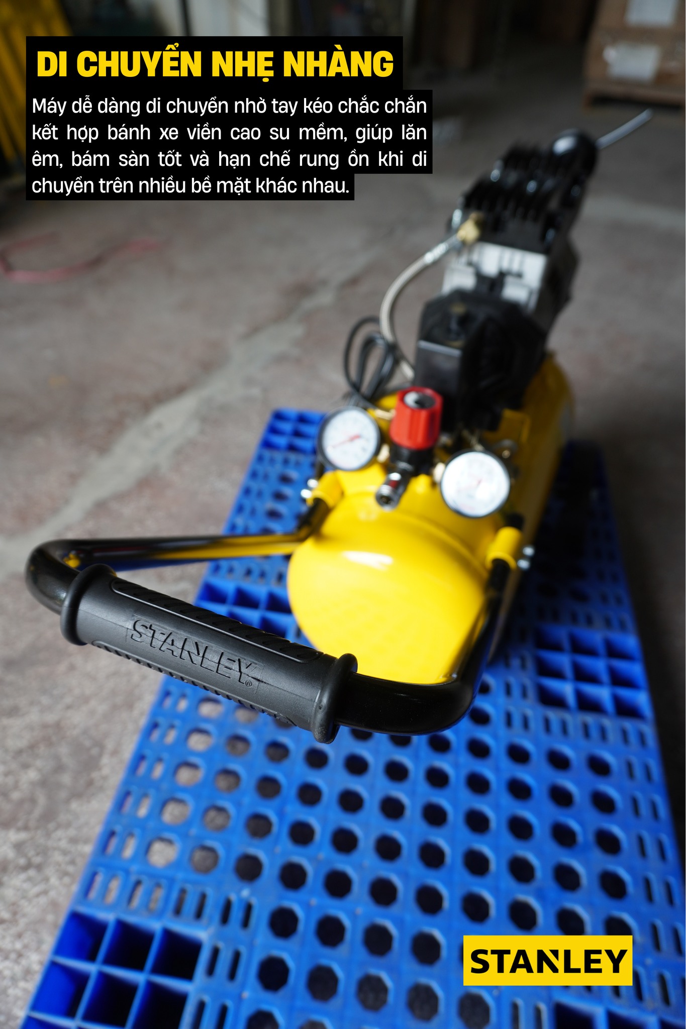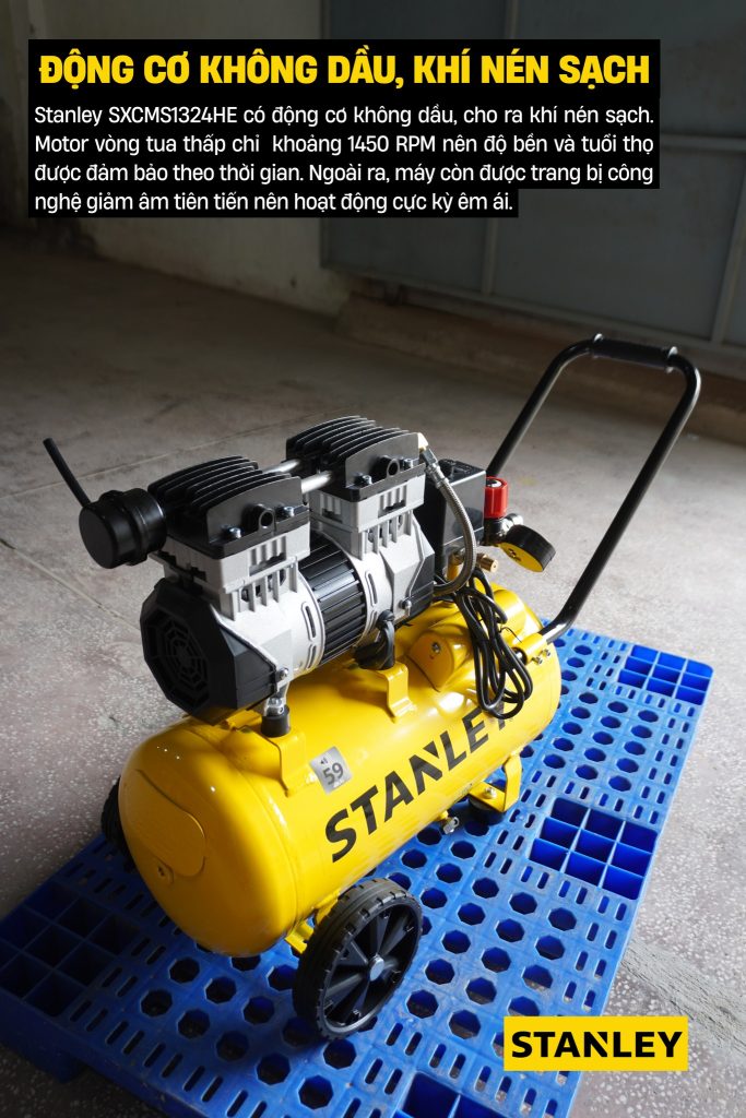 Máy nén khí không dầu 24L Stanley SXCMS1324HE thuộc thương hiệu Stanley nổi tiếng của Hoa Kì.