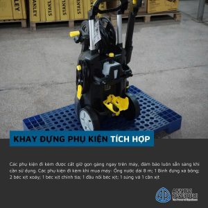 + Trang bị giá đỡ đựng súng xịt, có tay cầm thuận lợi dễ di chuyển cùng 2 bánh xe vỏ cao su.