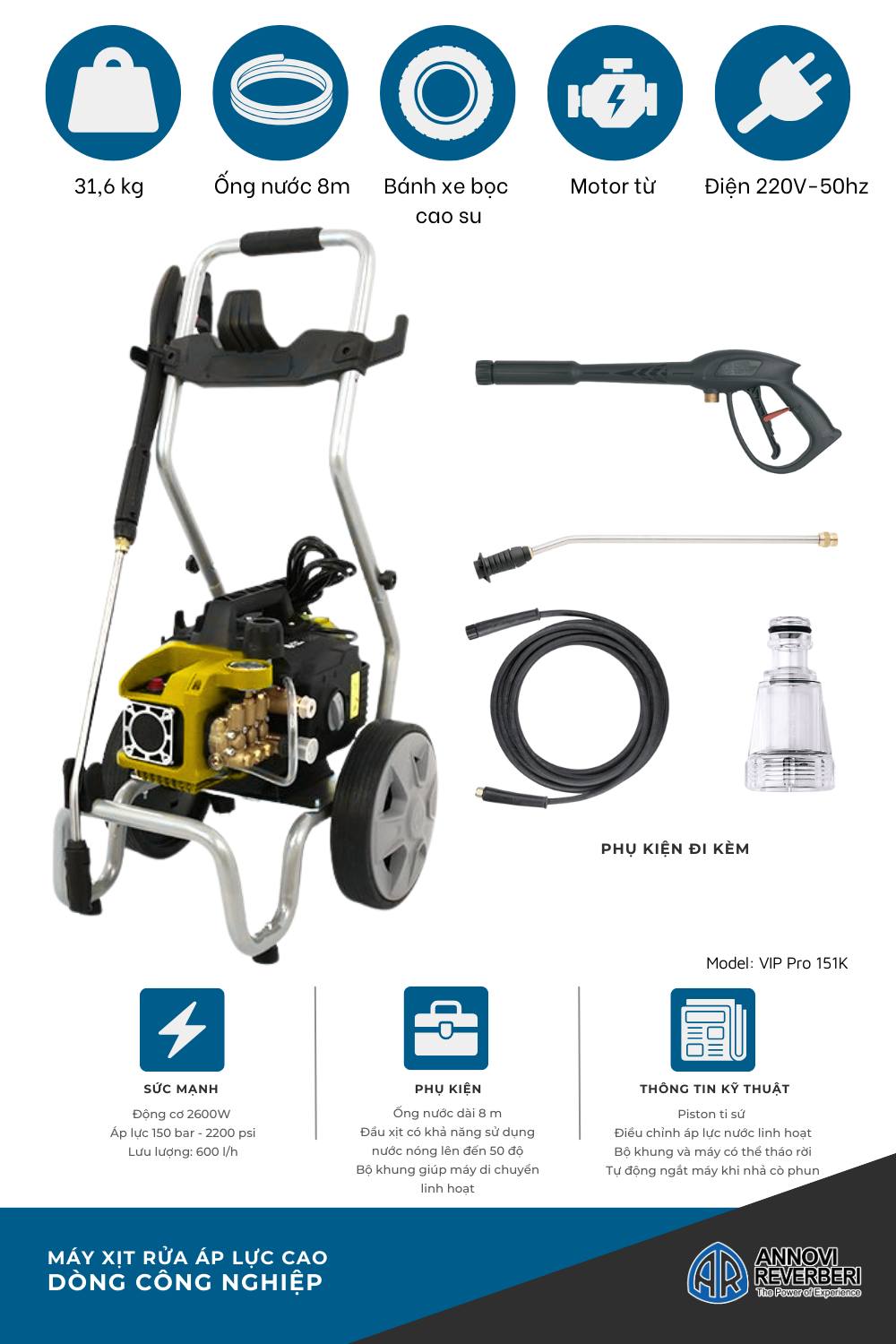 Máy xịt rửa áp lực cao Annovi Reverberi VIP Pro 151K là một công cụ hỗ trợ đắc lực cho công việc vệ sinh của bạn, giúp tiết kiệm thời gian, công sức và nâng cao hiệu quả.
