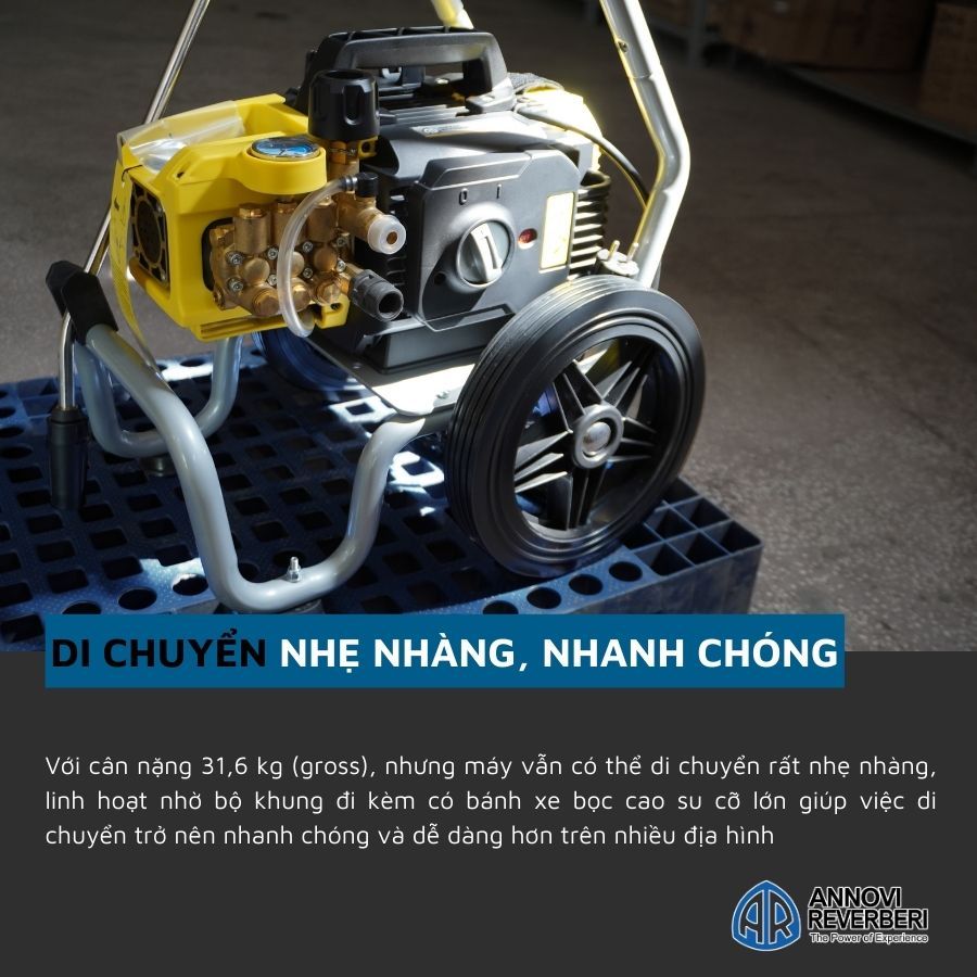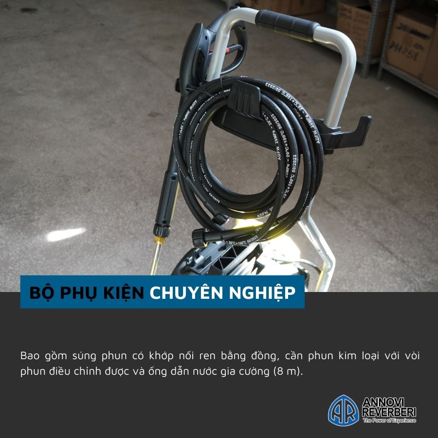 - Vòi xịt bằng hợp kim nhẹ và bền bỉ, sử dụng piston sứ độc quyền của Annovi Reverberi, cho hiệu quả làm sạch tối ưu.