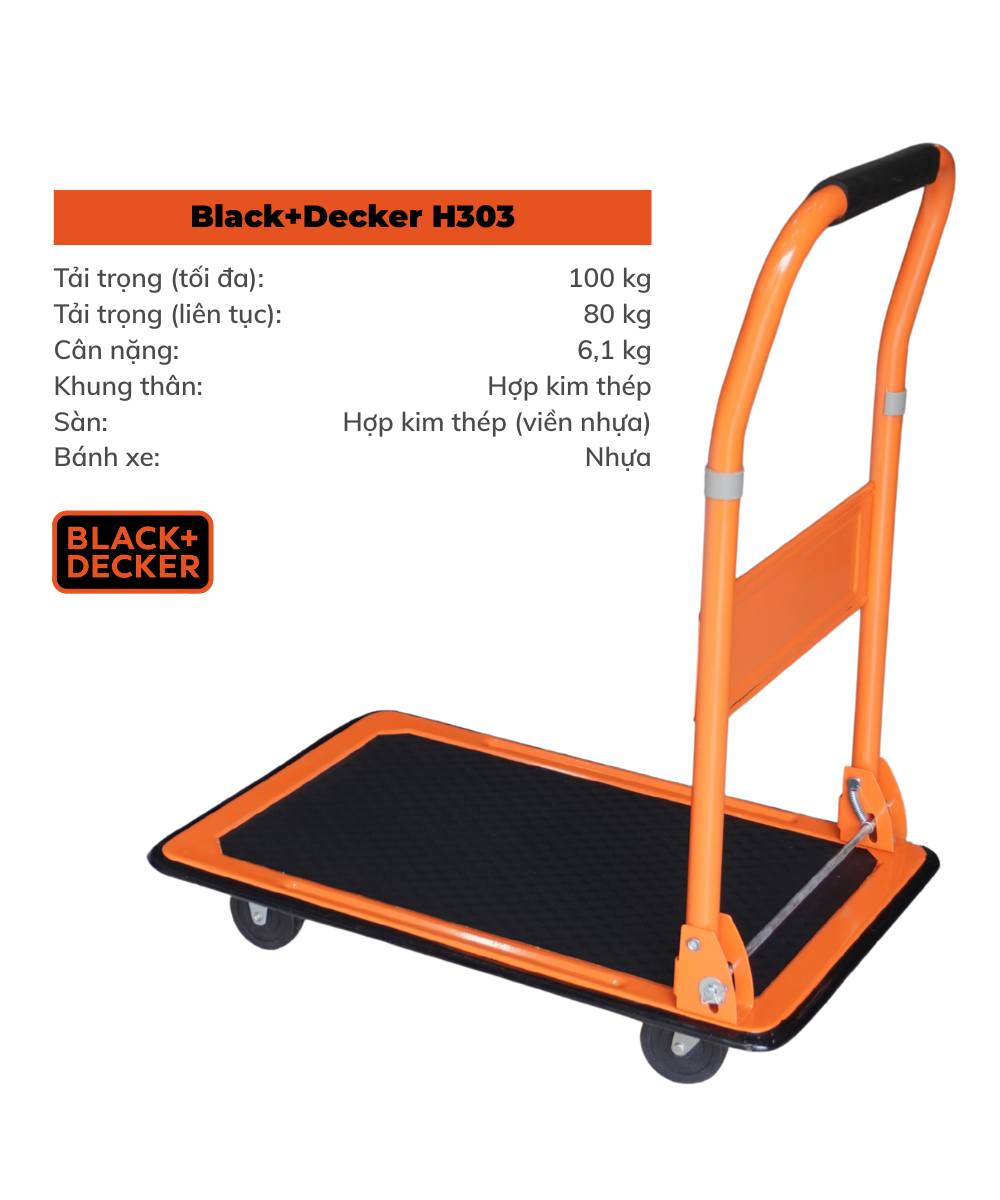 Thông số kỹ thuật Xe đẩy hàng 4 bánh cao cấp Black and Decker H303: