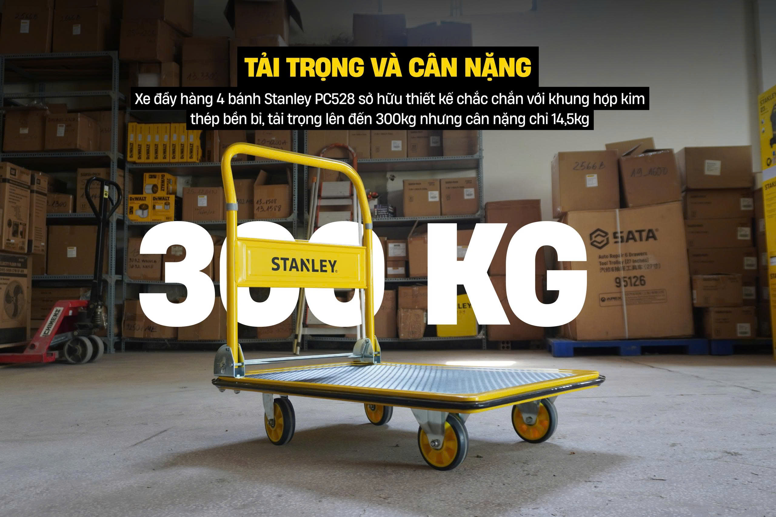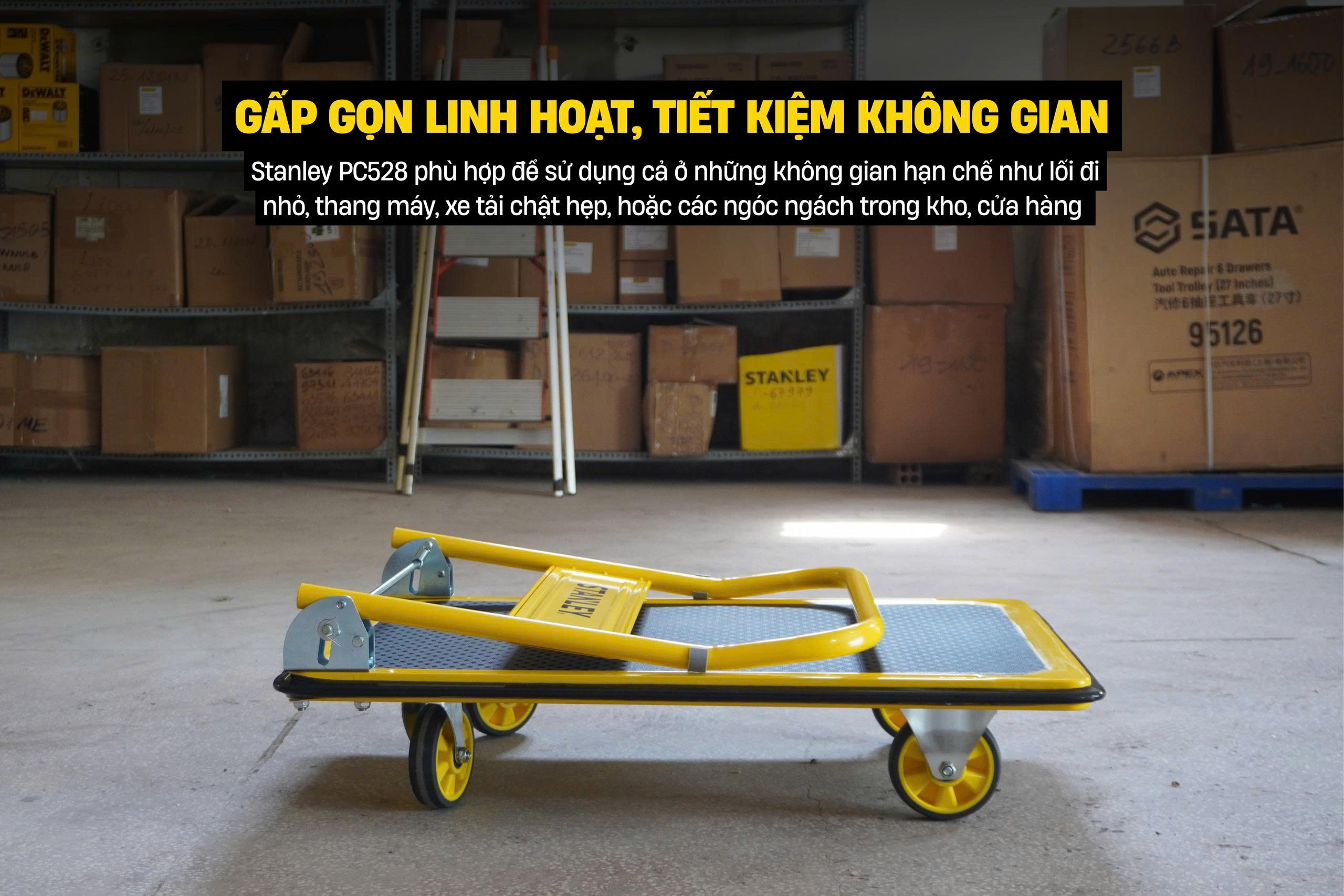 Xe đẩy hàng 4 bánh Stanley PC528 được phân phối chính hãng bởi DACS Việt Nam.