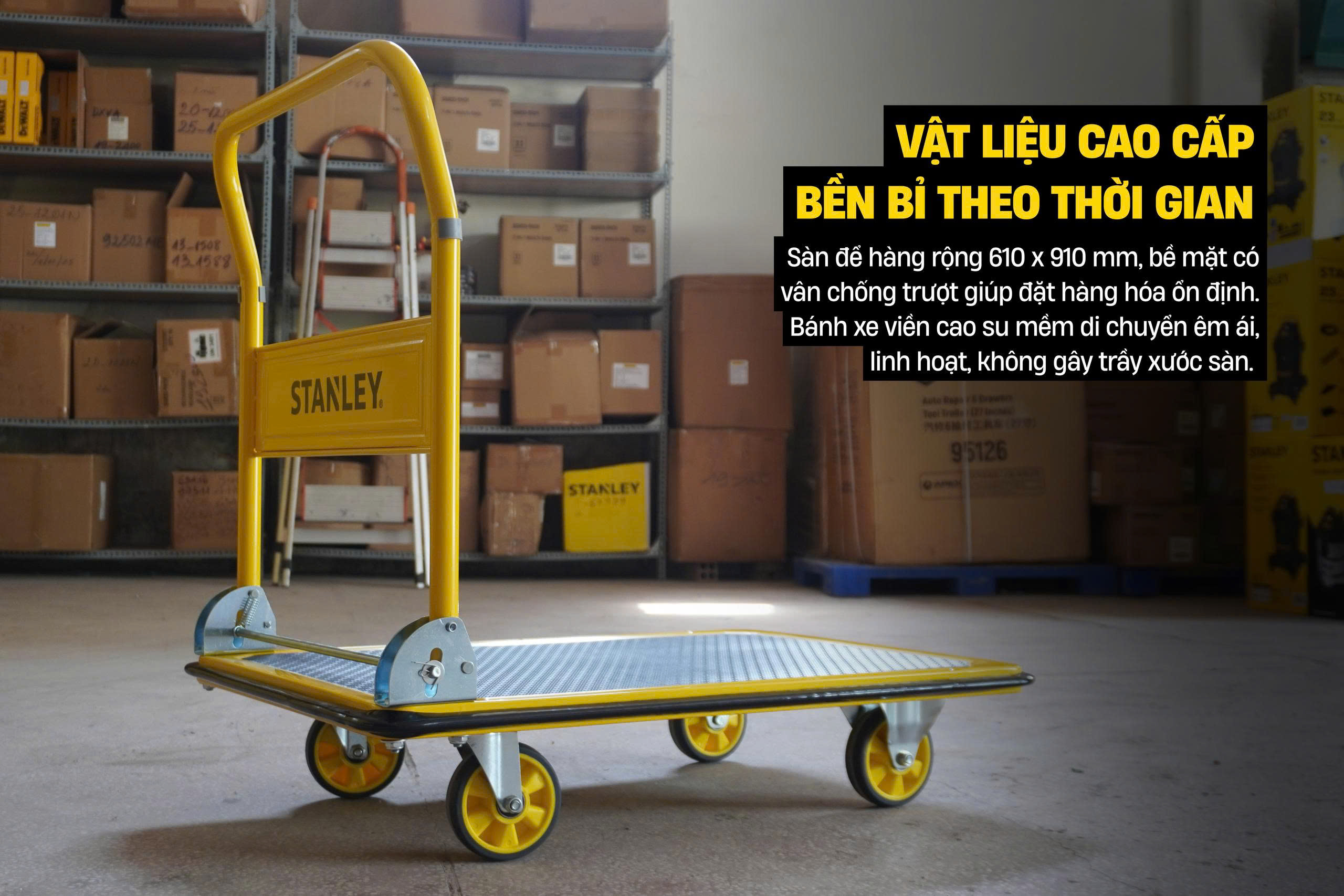 Xe đẩy hàng 4 bánh Stanley PC528 thuộc thương hiệu Stanley nổi tiếng đến từ Hoa Kì.