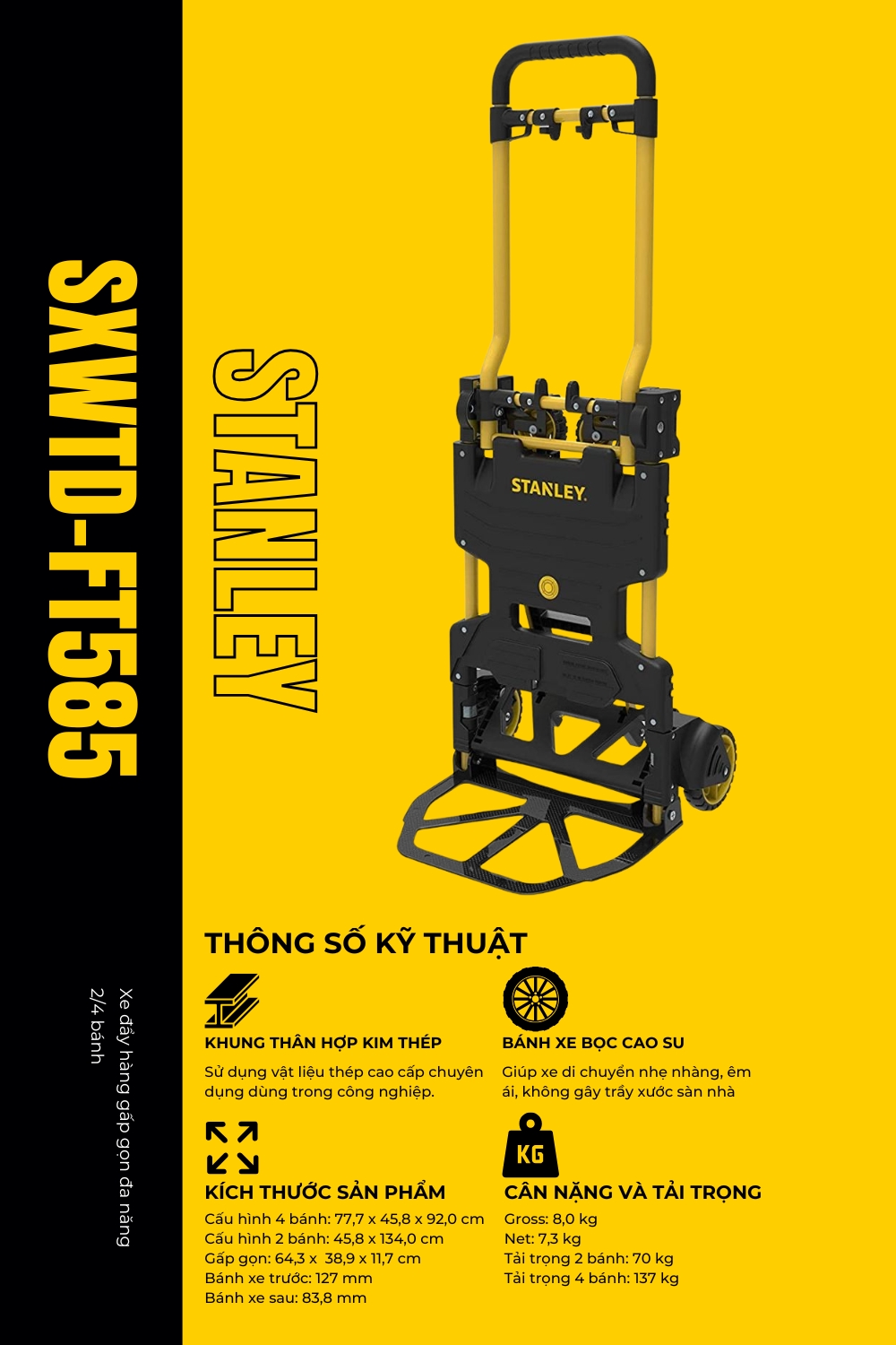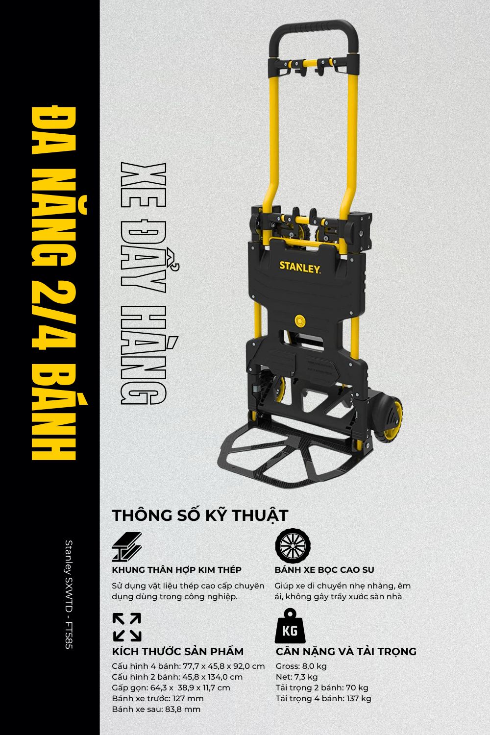 Thông số kỹ thuật Xe đẩy hàng chuyển đổi 2-4 bánh Stanley FT585: