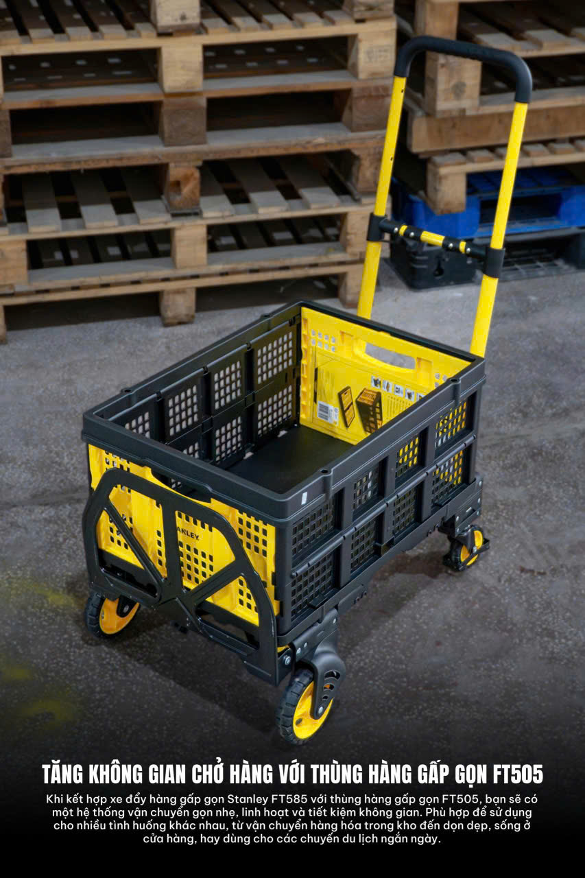 Xe đẩy hàng chuyển đổi 2-4 bánh Stanley FT585 được phân phối chính hãng bởi DACS Việt Nam.