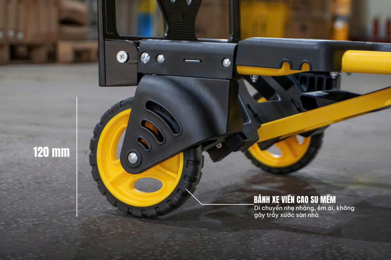 Xe có điểm nổi bật ưu việt là có thể thay đổi từ 2 bánh sang 4 bánh một cách dễ dàng, với thiết kế kích thước đế đựng thàng dạng 2 bánh như các mẫu FT502, FT516, FT520…, còn dạng 4 bánh tạo sự tiện lợi để di chuyển những hàng hóa cồng kềnh như các mẫu PC508, PC509, PC510…