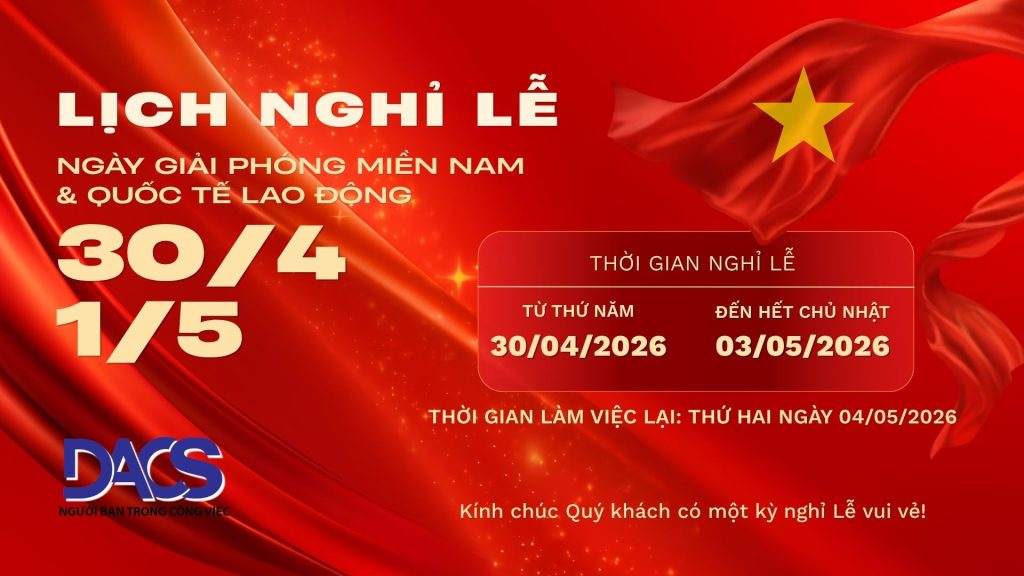 Công ty TNHH DACS Việt Nam trân trọng thông báo đến Quý vị lịch nghỉ lễ sắp tới.